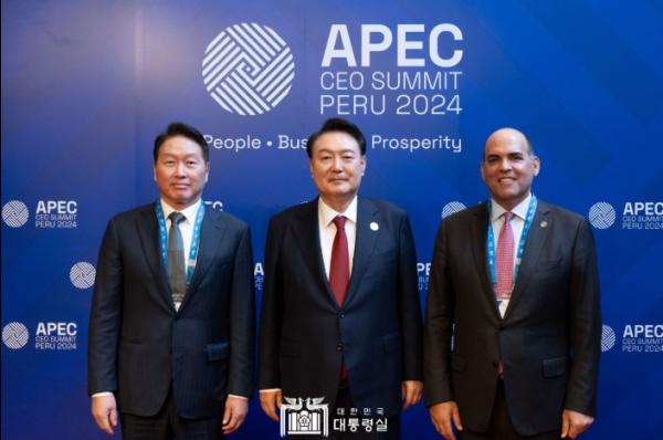 이번 ?APEC CEO 서밋?에는 페루, 캐나다, 호주, 뉴질랜드 등 APEC 회원국 정상과 제이미 다이먼 JP모건 체이스 회장, 추쇼우즈 틱톡 CEO, 게오르기에바 IMF 총재 등 1,000여 명의 글로벌 재계 리더와 석학들이 참석했다.
