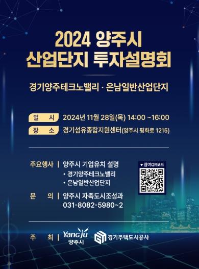 양주시가 오는 28일 관내 ‘경기섬유종합지원센터’에서 ‘2024년 양주시 산업단지 투자설명회’를 개최한다고 밝혔다.