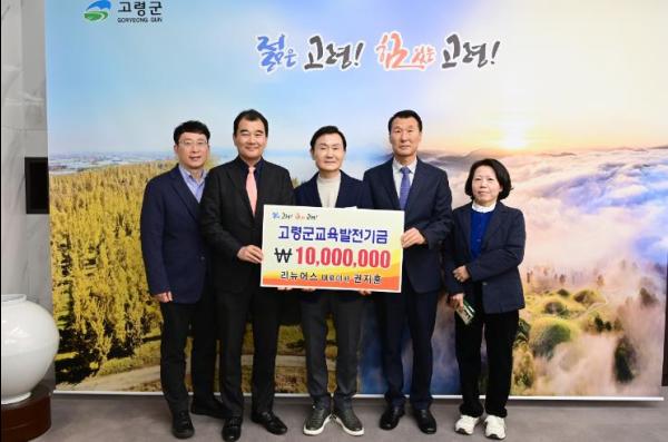 11월 27일 리뉴어스에서 고령군청을 방문하여 지역의 교육 발전과 인재 양성을 위해 사용해 달라며 교육발전기금 1,000만원을 기탁했다.