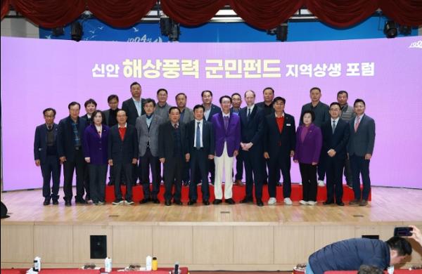 신안군은 지난 27일 신안군청 공연장에서 ‘신안 해상풍력 군민펀드 지역상생’이라는 주제로 박우량 신안군수, 신안군의회 이상주 의장 및 군의원, 전남도의회 의원, 신안군·목포수협 조합장, 지역농협 조합장, 지역주민, 인근 지자체, 발전사 관계자 등 300여 명이 참석한 가운데 신안 해상풍력 군민편드 지역상생 포럼을 개최했다.