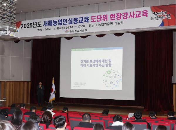 충남도 농업기술원은 28일 기술원 대강당에서 시군 농촌진흥공무원 170여 명을 대상으로 ‘2025 새해농업인실용교육 도 단위 현장강사 교육’을 실시했다고 밝혔다.