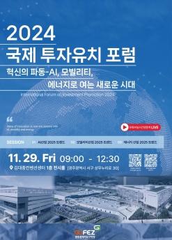 광주광역시는 29일 김대중컨벤션센터에서 ‘혁신의 파동?AI, 모빌리티, 에너지로 여는 새로운 시대’를 주제로 ‘2024 국제투자유치포럼’을 연다.