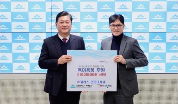 인천 미추홀구는 28일 구청장실에서 ㈜필라스인터내셔널로부터 1억 1천600만 원 상당의 육아용품을 전달받았다.
