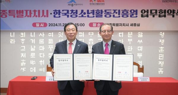 세종특별자치시가 28일 시청 세종실에서 한국청소년활동진흥원과 지역 청소년들의 성장을 지원하기 위한 업무협약을 체결했다.