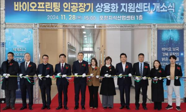 포항시는 28일 포항융합기술산업지구 내 포항지식산업센터에서 글로벌 바이오프린팅 인공장기 기술개발을 선도하는 ‘바이오프린팅 인공장기 상용화 지원센터’ 개소식을 개최했다.