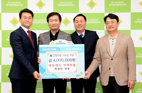 경산시는 28일, 경산 · 청도 미래포럼의 임원진 4명이 각 100만 원씩 총 400만 원의 고향사랑기부금을 전달했다고 밝혔다.