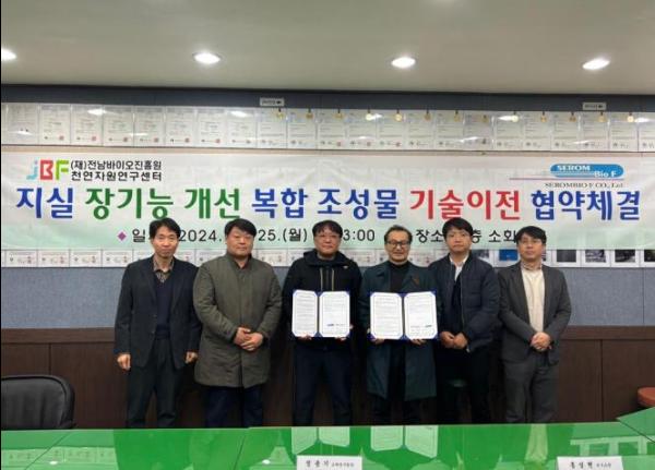 전남바이오진흥원 천연자원연구센터는 25일 ㈜새롬바이오에프와 기술이전 계약을 체결했다고 밝혔다.