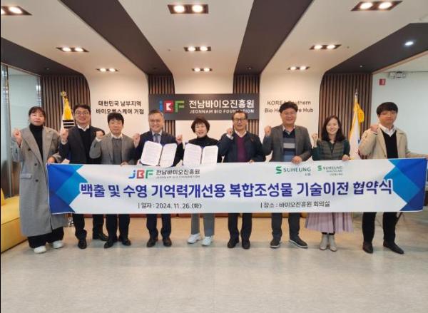 이번 협약은 백출과 수영 추출물의 복합조성물이 인지기능 및 기억력 개선에 뛰어난 효능을 보인다는 연구 결과(특허 등록번호 제10-2649776호)를 바탕으로 진행되었다.