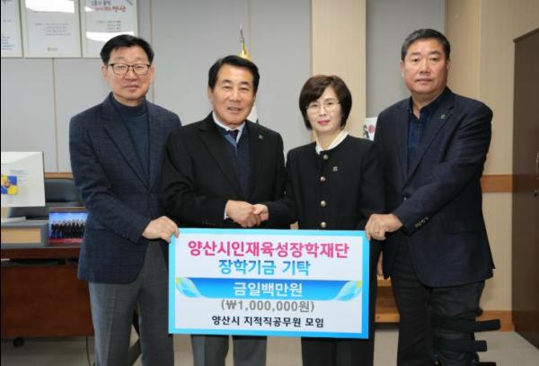 양산시청 지적직 공무원 모임는 지난 28일 지역 인재육성을 위한 장학금 100만원을 양산시인재육성장학재단에 기탁했다.