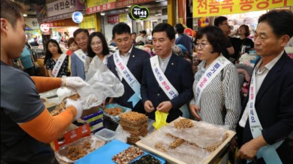 황인호 청장을 비롯해 주민 및 자생단체, 직원 등 300여 명은 상인, 주민들과 지역경제 살리기에 한마음 한뜻으로 동참하였으며 온누리상품권으로 농산물 및 제수용품을 구입했다.