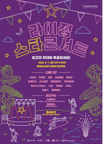 7일로 예정된 충북콘텐츠코리아랩의 <2019 라이징스타 콘서트>가 가을장마와 태풍 예보로‘동부창고’로 장소를 옮겨 개최된다.