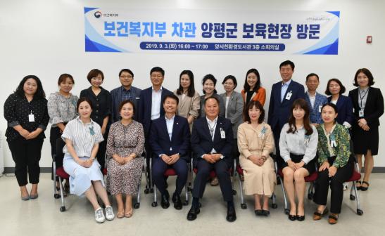 양평군은 지난 3일 보건복지부(이하 “복지부”) 김강립 차관이 양서어린이집을 방문하여 보육지원체계개편 시범사업 현황을 살펴보고 어린이집을 이용하는 학부모를 포함한 어린이집 관계자들과의 간담회를 개최했다고 밝혔다.