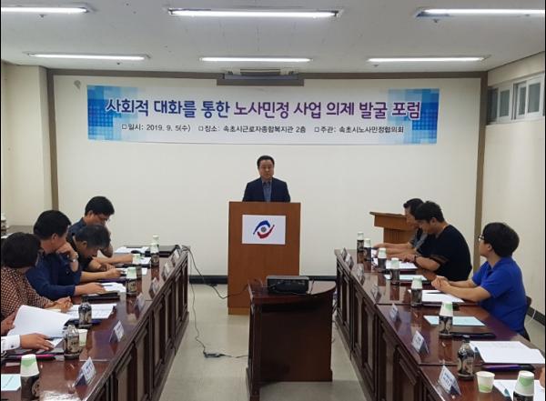 속초시노사민정협의회(위원장 김철수 시장)는 2020년 사업 의제 발굴을 위한 포럼을 9월 5일 속초시근로자종합복지관에서 개최하였다.
