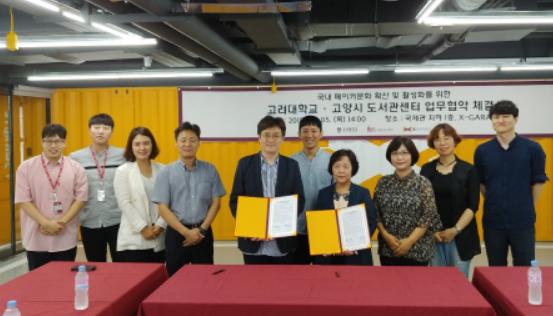 고양시 도서관센터는 지난 5일 고려대 KU 개척마을(이하 고려대)과 지역 내 메이커문화 확산과 활성화를 위해 업무협약을 체결했다..