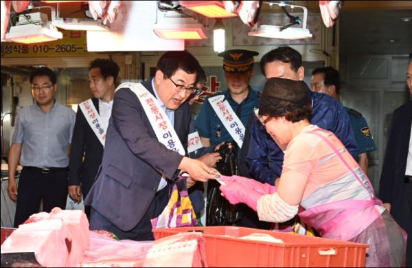 주낙영 경주시장은 추석을 일주일 앞둔 6일 지속적인 물가상승과 경기침체, 대규모 유통업체의 공격적 마케팅 등으로 어려움을 겪고 있는 전통시장을 찾아 제수용품과 선물용품 등 성수품 물가동향을 점검하고 시장 상인들의 애로사항을 청취하며 상인들을 격려했다.
