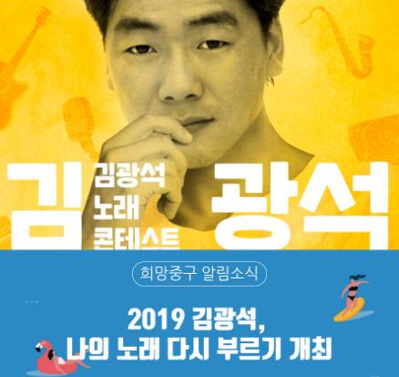 ‘김광석 나의 노래 다시 부르기’는 한국포크음악의 전설, 고(故) 김광석의 출생지 대구에서 그를 기리기 위해 중구청이 매년 개최하는 경연대회로 올해는 초대가수 백지영, 데이브레이크, 박창근의 화려한 공연도 준비되어 있다.