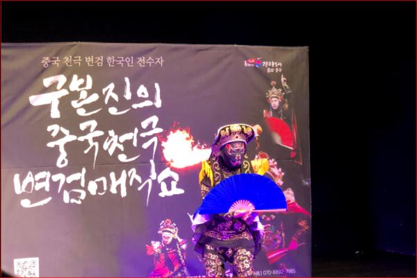 이날 '중국 천극변검&매직쇼'는 당초 함월루에서 예정돼 있었지만 제13호 태풍 '링링'의 북상으로 인해 문화의전당에서 열렸다.