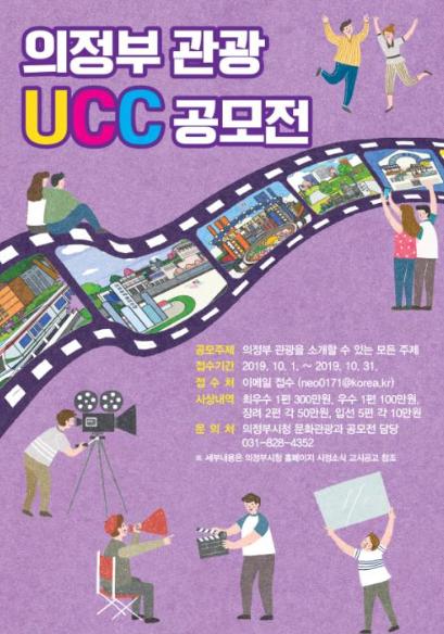 의정부시(시장 안병용)는 전국민을 대상으로 의정부 관광자원을 널리 알리고 의정부시 관광 홍보 콘텐츠 발굴을 위한 ‘의정부 관광 UCC 공모전’을 개최하고 10월 1일부터 10월 31일까지 접수받는다.