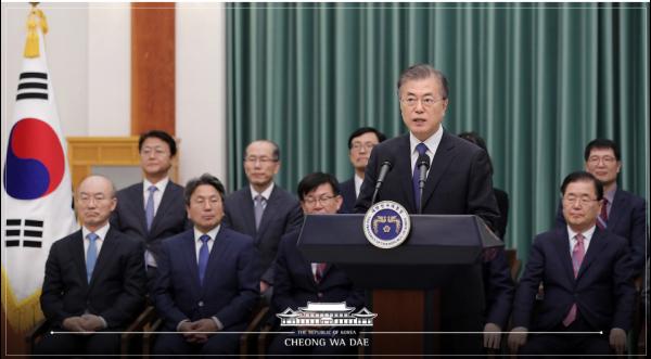 임명장 수여식 후 문재인 대통령은 대국민 담화를 발표했다.