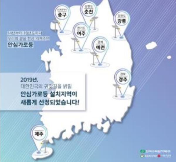 안심가로등 지원사업은 2014년부터 방범 취약지역 주민들의 안전 확보와 지역주민의 안전의식 확립을 목적으로 친환경에너지를 활용한 가로등 설치를 지원하는 사업으로, 올해에는 전국 33개 지자체에서 신청하여 제주시를 포함한 6개 지자체가 선정되었다.