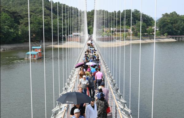 국내 최장 예산군 예당호 출렁다리에 추석 연휴 기간 5만6000여명이 방문한 것으로 나타났다.